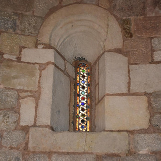 CHIOSTRO Adiacente alla chiesa sul lato meridionale e in parte avanzante rispetto il piano della facciata è il piccolo chiostro della prima metà del XIII secolo, rettangolare (lati nord e sud 6,40 m, lati est e ovest 7,20 m) e con coppie di arcate separate da un pilastro dilatato a formare un contrafforte posto a metà dei lati. Questo chiostro è caratterizzato da archi polilobati di influenza moresca, unici nel romanico catalano, che hanno la particolarità di disposti con andamento verticale e non il consueto andamento radiale, precisamente cinque lobi nei lati lunghi e tre in quelli corti. Infatti questi archi sono costruiti con blocchi orizzontali che avanzano in aggetto. Queste arcate sono rette da colonnine binate che negli angoli si addossano ad un pilastro quadrangolare, necessario a reggere le spinte fuori asse. Probabilmente i contrafforti dovevano essere il supporto di volte che non esistono più in quanto la copertura attuale è in legno a vista, ma la stessa è il risultato di un restauro volto ad eliminare il sopralzo in epoche successive al medioevo.