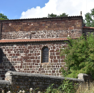 Proseguendo la visita si giunge all’abside, poligonale all’esterno mentre è semicircolare all’interno. Questa è una caratteristica peculiare delle chiese del Velay, come la loro realizzazione in pietra lavica.